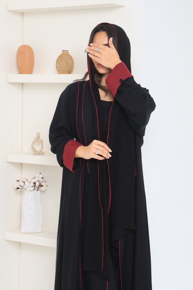 عباية صيفية باللون الاسود بياقة وفافين عودي