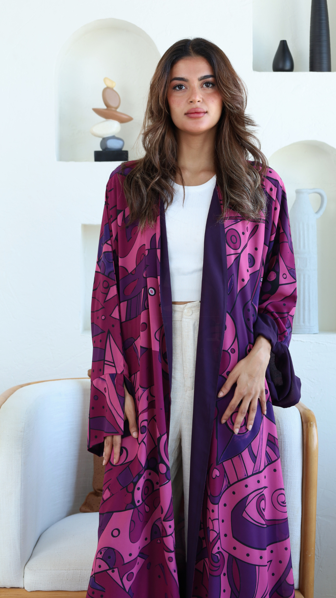 مصنوعة من قماش خفيف ومنعش يناسب حرارة الصيف، والأجمل إنها دبل فيس – تلبسينها على الجهتين، وكأن عندك عبايتين في وحدة!
